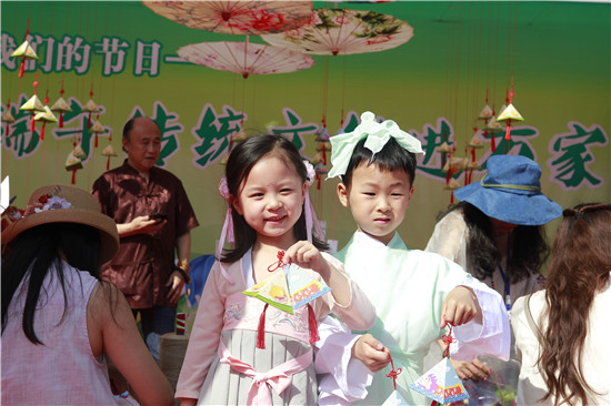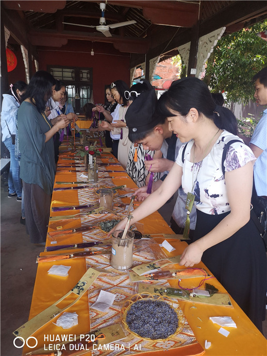 启动仪式结束后,青神县亲子教育协会志愿者担当文化使者,现场满是浓浓的传统气息。活动现场邀请市民现场猜端午灯谜、制作端午福包、制作端午花环、手绘油纸伞,并现场展演钱枪等传统节目,让广大市民充分感受传统文化魅力。