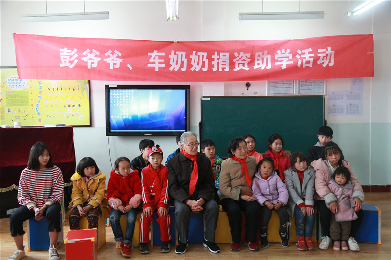 2018年,在旌阳区关工委和红十字会牵线下,彭良田夫妻联系到了新中学校。9月份开学之际,这两位老人来到新中学校,为14名特困学生捐赠一学期的生活费,“算是我送给他们的一份开学礼吧!”