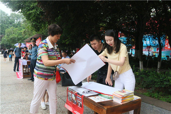 四川新闻网眉山6月14日讯(朱林玉 文/图)为进一步推动2019年消防“安全生产月”活动深入开展,大力加强消防安全宣传力度,深化“安全生产月”宣传工作,进一步提高广大群众的防灾减灾意识和自我安全防护意识,仁寿消防大队积极结合消防工作特点,利用宣传月的有力契机,发挥优势,6月14日,仁寿消防联合各部门在法治广场开展“安全生产月”咨询日活动。