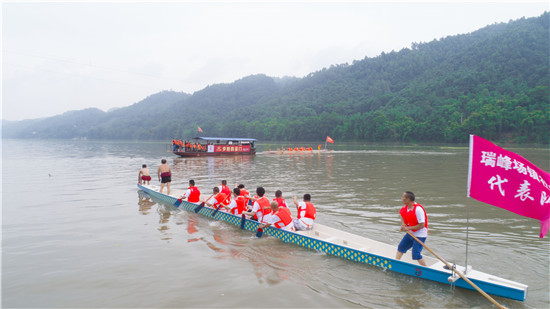 据悉,瑞峰镇自古就有在大端午(农历五月十五)举办龙舟会的习俗,源于苏东坡与王弗“唤鱼”联姻的爱情故事。为纪念苏王爱情,传承瑞峰民俗,弘扬龙舟精神,今天全镇各单位、各村(社区)的游泳健队甩开膀子奋勇弄潮,集中展现自强进取、一往无前的龙舟精神和齐头并进的龙舟文化。