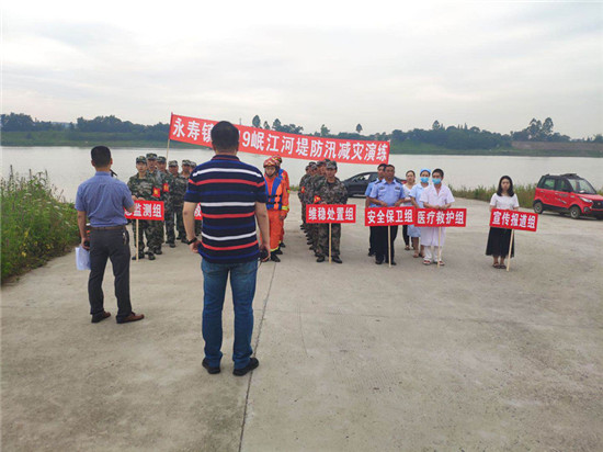 演练模拟永寿镇持续强降雨,岷江河堤水位急剧上升达到警戒水位,地势低洼的住户受困。接到险情后,永寿镇立即启动应急预案,组织人员赶赴现场进行救援,总监测组、抢险组、安全保卫组、医疗救护组、维稳处置组等按照分工,各就各位,分别展开了救援转移被困群众、医疗救护及现场管制等工作,消防指战员们士气高涨,行动迅速、密切配合,克服各类不利因素,在防汛抢险指挥组的指挥下,成功救出被困群众,排除“险情”。经过各单位的通力协作,演练科目全部按原计划完成,整个演练过程组织严密、协调配合、有条不紊,达到了预期效果。