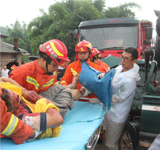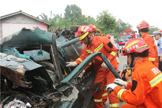 根据现场情况,消防指战员迅速利用液压破拆工具将变形的皮卡货车进行破拆,经过20分钟的紧张救援成功将2名被困人员救出并移交120救护人员。