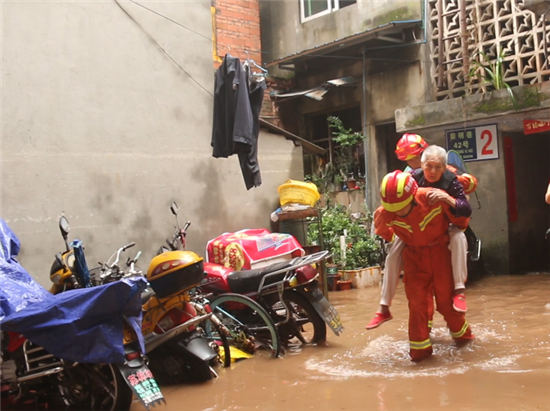 抵达现场后发现江家坝位于低洼地带,大雨一直在下,书院街中队消防员迅速展开救援,经过1个小时救援,被困的6人全部疏散至安全地点。