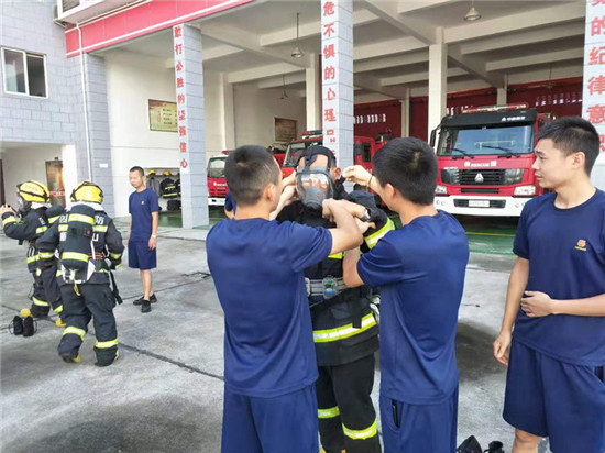 在交流过程中,专职队骨干与飞虎救援队队员一起详细探讨了在防护、救生等方面的实际操作方法和具体注意事项,同时也分享了各类灾害现场的救援知识。随后,专职队骨干带领飞虎救援队人员参观了消防车辆,并讲解了车辆使用性质,接着带领大家参观了大队荣誉室、战斗班等,飞虎救援队员对消防队员们的日常工作、生活、训练等有了基本了解,切身感受了消防救援国家队主力军的责任和荣誉。