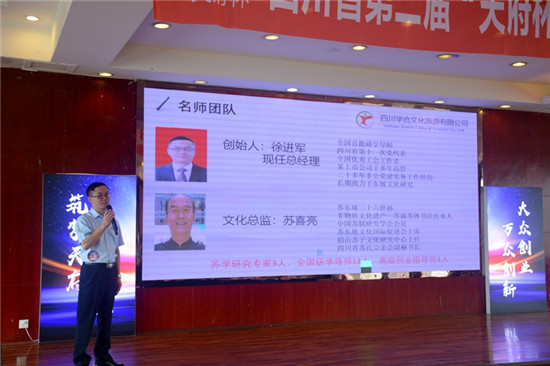 四川新闻网眉山7月19日讯(彭双碧 吕伟利 文/图)大众创业,万众创新。7月16日,四川学合文化旅游有限公司创始人、总经理徐进军,被推荐参与四川省第二届“天府杯”创业大赛。经过激烈的比拼,获得了眉山赛区“返乡下乡创业组”选拔赛第一名的优异成绩。