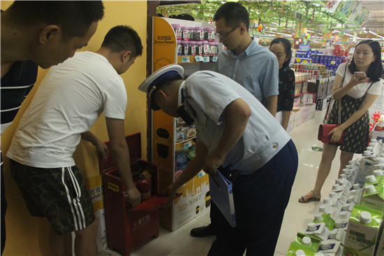 督导组先后来到丹棱县蓝天超市、丹棱县家乐购超市,听取了场所消防安全负责人就本单位消防工作情况的汇报。