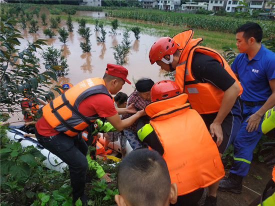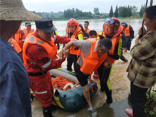 7月22日早上8时33分,洪雅河坝中队接到报警称:洪雅中山乡桐梓岗村有人员被困。接到报警后,中队立即调派一车七人赶赴现场。早上8时55分,消防指战员到达现场。经了解,村内被困人员较多,分布范围较广,内涝严重,最深处达150公分左右,且被困群众里面有两名老人和一名儿童。消防指战员立即部署救援方案,带上水域救援装备,坐上冲锋舟进村救援。暴雨仍没停歇,水位不断上涨,接到被困群众的消防指战员为了群众安全,毅然下船,徒步涉水扶着冲锋舟前往安全点。