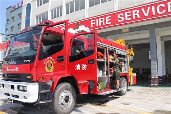 四川新闻网眉山8月7日讯(周燕飞 郑丽霞 文/图)为进一步做好抗洪抢险救援准备工作,强化队伍执勤战备力量,确保队伍能够“拉得出、打得赢”。 8月7日,青神消防大队对执勤车辆和器材装备进行全面的维护保养,确保车辆器材装备时刻处于最佳战备状态。