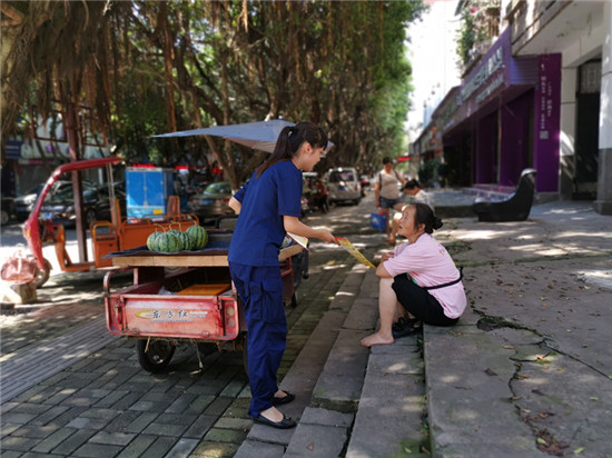 四川新闻网眉山8月14日讯(余欢 文/图)8月14日下午,洪雅消防大队走进外西街棚户区开展消防宣传活动,3000份制作规范、简洁明了的防火知识宣传单免费赠居民。