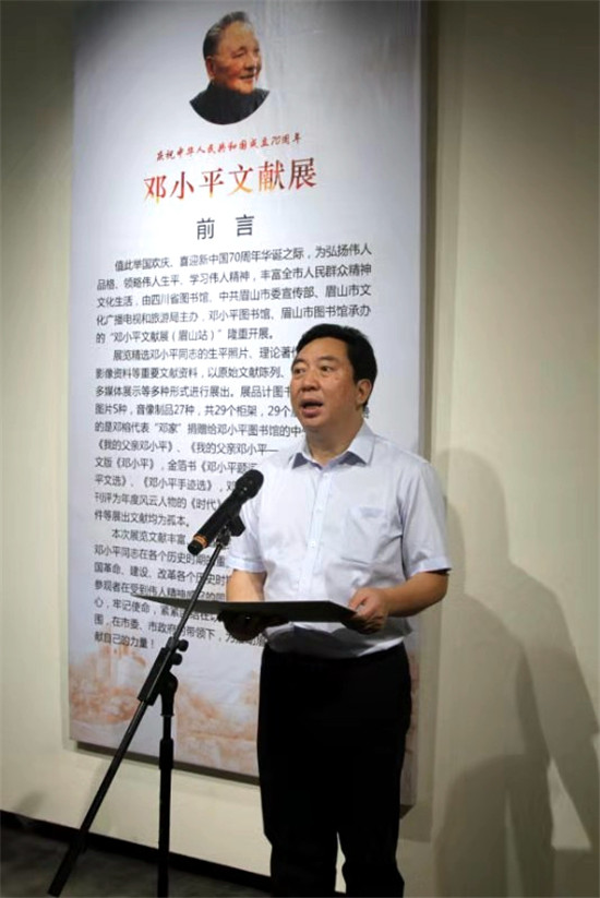 四川新闻网眉山8月20日讯(吕伟利 赵学军 文/图)值此举国欢庆、喜迎新中国成立70周年华诞之际,为弘扬伟人品格、领略伟人生平、学习伟人精神,丰富全市人民群众精神文化生活,8月19日,由四川省图书馆、中共眉山市委宣传部、眉山市文化广播电视和旅游局主办,邓小平图书馆、眉山市图书馆承办的“邓小平文献展”启动仪式在市美术馆举行,市委常委、宣传部部长何迎晓出席活动并宣布文献展开展。