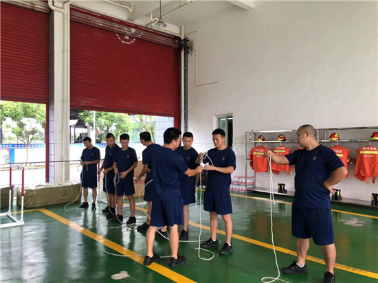 四川新闻网眉山8月26日讯 为进一步提升新队员业务技能水平,增强抢险救援能力,8月23日,丹棱消防大队组织新队员积极开展结绳法训练。