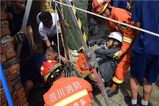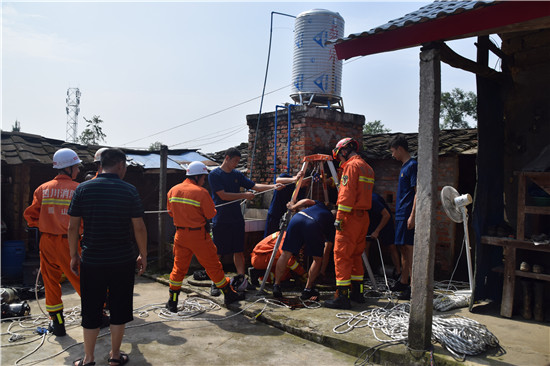 四川新闻网眉山8月28日讯(陈坤 唐英 文/图)8月28日上午10点07分,眉山百坡路消防中队接到警情称,眉山市白马镇万坡村8组有人员被困井里,其中被困人员为老人,接到警情后,眉山百坡路消防中队立即赶赴万坡村开展救援。