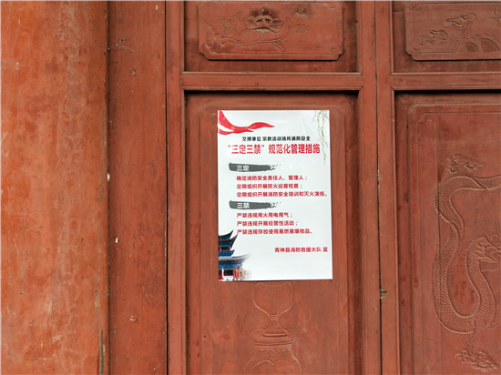 就进一步推进文博单位和宗教活动场所“三定三禁”消防安全规范化管理工作,检查组要求各宗教活动场所要严格按照文件要求,扎实开展各项自查自改工作,营造稳定的消防安全环境。