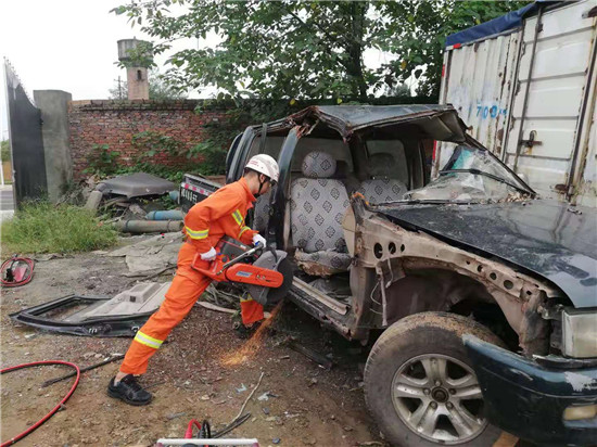 四川新闻网眉山9月12日讯 为进一步提高灭火救援能力和整体作战水平,使队员熟练掌握破拆装备的操作方法和实施应用能力,实现人与装备的完美结合,充分发挥所配装备的最大效能。9月11日上午,丹棱消防大队组织开展破拆装备实操训练。