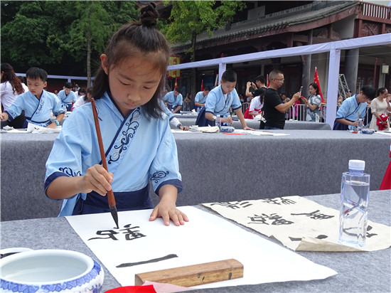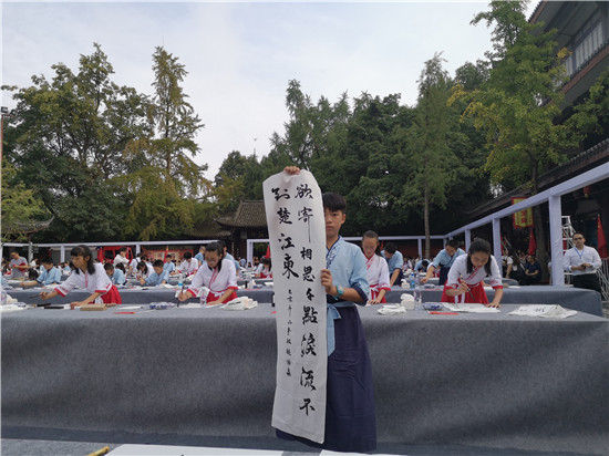 现场200名东坡少年和东坡区书法艺术界的杰出代表用自己擅长的书法表现出来,或行体、或草体、或楷体、展示了新时代东坡儿女对三苏文化的传承和延续,遒劲有力的毛笔字展现了东坡少年的文化风采。