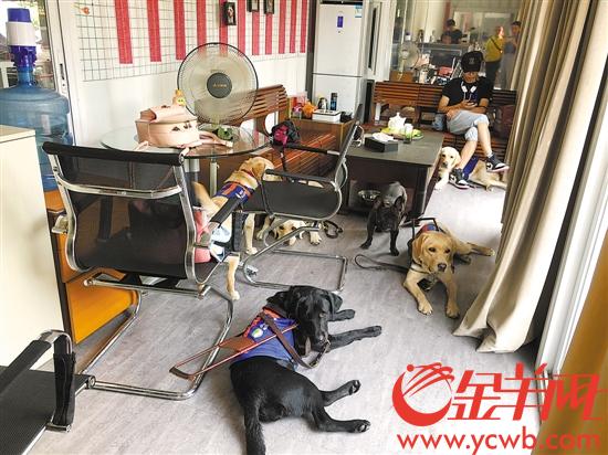 新基地环境逼仄,几条导盲犬瘫坐在基地内