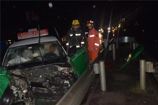 20时28分中队抵达现场,发现出租车驾驶员被困驾驶室,车头严重受损,车门变形无法正常开启,指挥员迅速组织人员维持现场秩序、勘察现场情况,并命令拿出液压扩张装备、金属切割器等器材准备救援。在观察被困人员基本情况后,救援组对驾驶室车门采取液压扩张,经过多次多角度的扩张后,车门被一点点打开。20时37分被困人员被成功救出,生命体征正常,无生命危险。
