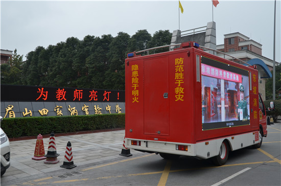 四川新闻网眉山9月17日讯(周涛 文/图)为深入开展“消防宣传进校园”活动,进一步增强学校师生消防安全意识和灭火逃生技能,9月以来,东坡消防大队利用流动消防宣传车“走进”东坡区内部分学校,为新学期师生撑起消防保护伞。
