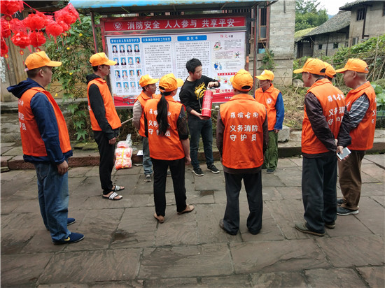 四川新闻网眉山9月18日讯(赵国祥 蒲明红 文/图) 为深入贯彻落实 “防风险,保平安,迎大庆”消防安全检查专项行动部署,全面提升罗坝场镇古街消防安全基础建设和火灾防控监管能力,洪雅县槽渔滩镇成立了罗坝古街义务消防守护队,确保以良好的安全生产环境迎接新中国成立七十周年大庆。