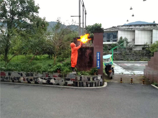 专职队员到达现场后,选择使用灭害灵赶走马蜂后摘取或者“火攻”等方法摘除马蜂窝。因近距离处置,救援人员除了要做好个人防护、考虑自身安全外,还需要考虑周边人员安全,对救援人员也是极大的考验。马蜂窝摘除后,队员们又对周围的马蜂进行了清扫,彻底消除安全隐患。队员们敏捷周全的处置得到了周围群众的一致好评。