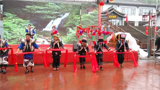 在瓦屋山景区古佛坪广场 ,祝酒歌响起,“青亮亮的咂酒哎...哎咿呀嘞嗦嘞,哦呃咿呀嘞嗦嘞呀......”热情的当地村民,拿出自家亲自酿制的酒来款待远方到来的客人,这是一种神圣而不可改变的待客礼节。让游客感受到当地的风土人情。