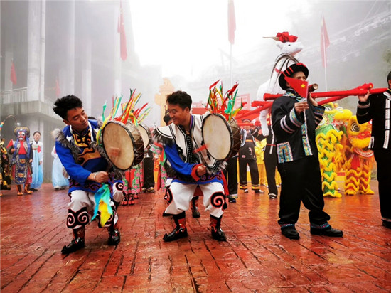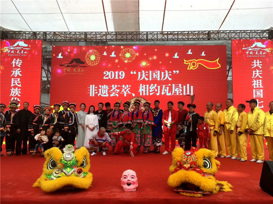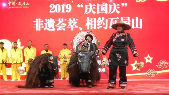 四川新闻网眉山10月7日讯(吕伟利)2019年10月1日-10月5日,2019“庆国庆”非遗荟萃-相约瓦屋山,非遗文化展演吸引游客。