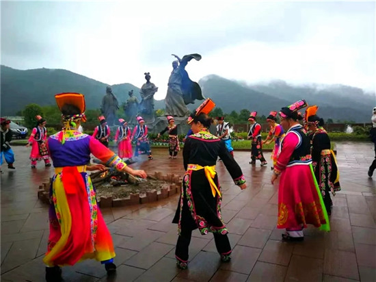 跳锅庄把游客的情绪引向高潮。游客们互相牵手,载歌载舞,旋转跳跃,这种氛围,让参与者久久难忘。(图片源自瓦屋山景区)