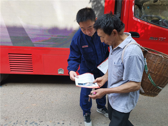四川新闻网眉山10月12日讯(余欢 石艳芳 文/图)为切实加强农村抗御火灾能力。10月11日,洪雅消防大队深入辖区柳江镇开展消防安全“进村入户”活动,将消防安全知识送到村民手中,进一步提高村民消防安全意识和火灾自防自救能力。