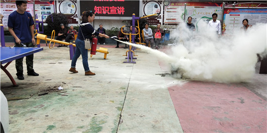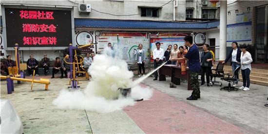 培训前,宣传员首先结合身边发生的火灾事故,分析了火灾对社会安全造成的重大危害,强调了社区消防安全工作的重要性和必要性。同时,深入浅出的讲解了火灾发生的原因及预防、如何正确拨打火警电话、如何组织人员疏散逃生等注意事项,并提醒社区群众要认真检查消防设施、电气线路,清理疏散通道堆积物,保证安全出口畅通,真正消除火灾隐患。培训结束后,宣传员就灭火器的正确使用进行指导,采用利用与实践相结合,组织社区群众进行实操演练,用油盆模拟初期火灾,组织社区群众正确使用灭火器扑灭初期火灾。