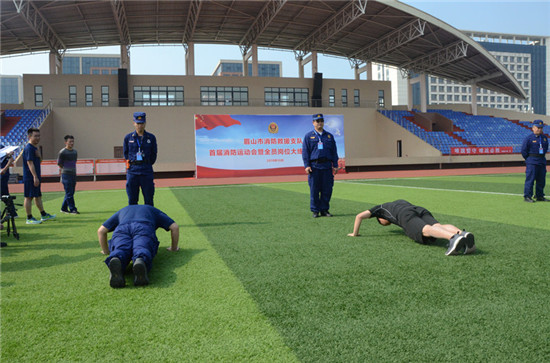 一名合格的消防员必须拥有强健的体魄,在仰卧起坐比赛现场,副部长刘俊峰亲自示范指导“仰卧起坐”项目。听到“开始”口令后,刘俊峰副部长仰卧于垫子上,两腿并拢,含胸低头,腹部用力,上体屈起成坐姿,然后上体后倒还原成仰卧姿势,完成动作后,成立正姿势,一口气完成了20个仰卧起坐。站在一旁的消防员们个个摩拳擦掌、跃跃欲试,高声地为刘部长呐喊,数数声、加油声、喝彩声此起彼伏,将赛场气氛推向高潮!