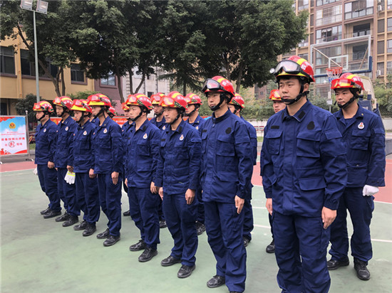 比赛期间,大队全体参赛队员服从赛务安排,严格遵守赛场纪律、顽强拼搏。在实操竞赛环节,听到“准备”口令,参赛队员佩戴好个人防护装备并认真开展检查, 下达“开始”口令后,凝神聚力,动作整齐划一、现场气氛热烈。
