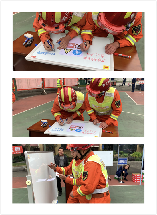 考试开始前,支队王建华参谋长向全体指战员明确了考试纪律,此次考试采取纸质闭卷答题的形式进行,题目分为单项选择、多项选择、判断题,题目涉及多种法律法规和规章制度,涉及内容多、知识涵盖面广。在考试过程中,全体参赛人员严格遵守考场纪律,始终保持高度饱满的精神状态,认真思考和答题,圆满的完成了此次考试,达到了预期效果。理论考试结束后,所有安全员又参加了绘制安全标识及名称考试,场地设置在支队营区,两名队员在起点线做好准备,听到开始的口令后,跑至5米处抽取1个安全标识识别单,跑至15米答题板处,按对应顺序写出所抽安全标志的名称,在跑至25米处抽取1个常用救援标识,跑至30米答题板处画出常用标识,跑出终点线喊“好”。最终各参赛队均保质保量完成比赛。