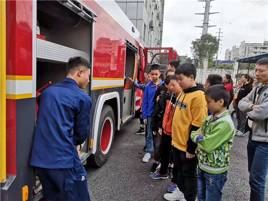 四川新闻网眉山11月4日讯(刘晓庆 文/图)全国第28个“119”消防宣传日到来,为进一步提升社会抗御火灾的能力,全面普及火灾防范知识和火场逃生自救技能,让更多的群众近距离了解消防、学习消防,仁寿消防大队紧紧围绕“防范火灾风险、建设美好家园”活动主题,于11月3日举办了“消防站开放日”活动,来自师范附小60多名师生参加了活动。