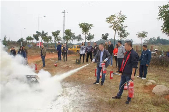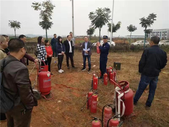 随后,培训课堂转移到户外,宣传人员讲解了手提式干粉灭火器、推车式灭火器等常用消防器材的使用范围、使用方法、注意事项和维护保养方法。并现场演示了灭火器的使用方式,指导参训人员进了灭火实地演练,通过亲身体验了解了灭火器的正确使用操作方法。