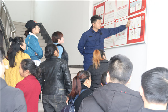 活动中,大队宣传员带领全体员工参观了消防科普教育基地,认识各种消防器材装备以及他们的作用和使用方法、学习了火场逃生技能和注意事项,并且还用通俗易懂的语言讲解了如何预防火灾事故、如何扑救初期火灾、如何正确拨打119报警电话等方面知识。随后,为了让参训员工更好的掌握灭火技能,宣传员现场示范了灭火器的正确使用方法,引起了大家的兴趣,几位员工亲身上阵,试验了一番,起先心里慌张,手忙脚乱,到最后镇定自若,挥洒自如,成功灭火。