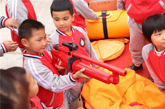 一走进消防大队,孩子们便被面前一排排消防救援工具、一辆辆火红的消防车吸引住了双眼。在消防员叔叔的带领下,萌娃们认识了各种消防救援神器,爬上了威武的消防车,试穿了小小灭火救援服,灭掉了熊熊烈火,化身为神奇的小小消防员。整个营区热火朝天,就像炸开了锅。为了让孩子们更进加大开眼界,消防员叔叔向萌娃们表演了楼层出水操和车载水炮,看见水流喷出的一瞬间,孩子们尖叫声阵阵,脸上扬起崇拜的表情。为了表达对消防员叔叔的崇拜之情,感谢消防员叔叔长期奋战在灭火救援前线,萌娃们奉上了自己亲手制作的爱心礼物。
