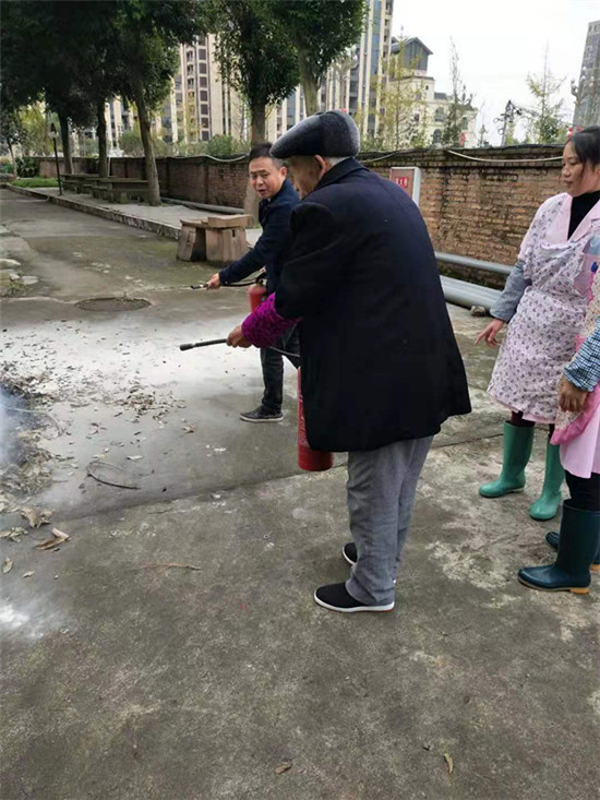 针对敬老院人员年纪较高,安全用电用火意识较差,消防安全知识欠缺的特殊性,宣教员讲解了干粉灭火器的使用说明并实地演示具体使用方法及注意事项,提醒老人们不能在寝室使用大功率的电器烤火,已及在床上抽烟等行为。同时组织敬老院管护人员和身体健康的老人将燃起的大火用灭火器扑灭进行了演练。