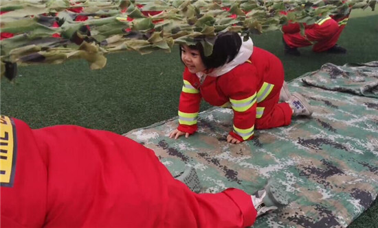 活动趣味满满,同时包含深意。爱的呼唤,引导幼儿在危险时刻如何正确呼救;生死时速,接到幼儿和家长要用小毛巾捂住口鼻,弯腰逃离“火场”;冲锋陷阵、急速逃生、抢救伤员等等。此次活动中幼儿们发扬了不怕苦、不怕累的精神,学到了安全自救知识,体验了做一名消防员的无限光荣。