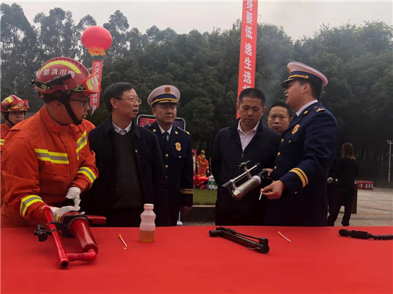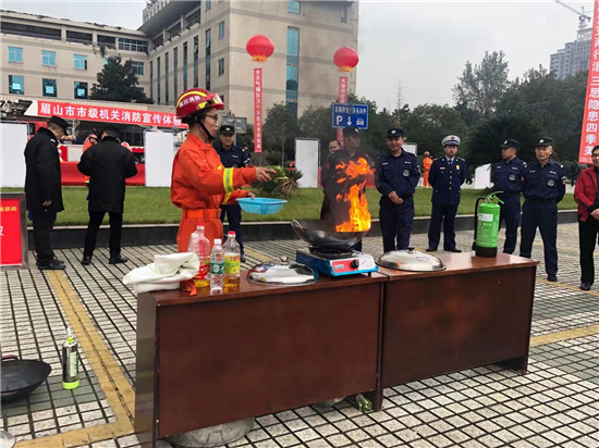当天下午,眉山市消防救援支队工作人员向前来参观的部门领导和工作人员介绍了消防车辆以及器材装备,讲解了针对火灾的预防和自救等消防基础知识。在参观过程中大家都兴致勃勃,对于不懂的器材都积极提问,工作人员都详细以专业的消防知识对提出的疑问做了详细的解答,让其更简单明了的知道消防车辆装备的用途和使用方法。
