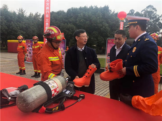 四川新闻网眉山11月26日讯(郑丽霞 文/图)“从电铃响到穿上装备出发,仅仅只需要1分钟时间,天啦,这能搞定吗?”“能搞定,时间就是生命!”今(26)日,在眉山市市政府的院坝内,100多名市级相关部门领导和工作人员“零距离”参与体验。