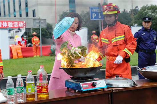 随后,部门领导和工作人员现场体验了扑灭油盆火灾、汽车应急逃生、室内消火栓实操、帐篷模拟逃生、火场逃生、家庭油锅火灾扑救等体验项目,使其更深层次的了解消防、认识消防、走进消防。