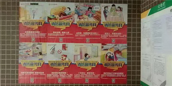 活动中,宣传人员深入各高层住宅小区、宾馆饭店、学校、医院、KTV、加油站等场所以及乡镇、社区,将主题鲜明、内容简介的宣传海报张贴在各场所醒目位置,“消防器材要整规矩哦”、“生命通道堵不得哟”、“插线板:我太难了”、“躺起抽烟 祸害人间”、“出口记到起 关键时刻跑得脱”、“电梯不是你想乘就能乘的”……一系列贴近生活实际的宣传海报陆续亮相,在辖区内形成了一道独特的景色,掀起了消防宣传月活动的热潮。