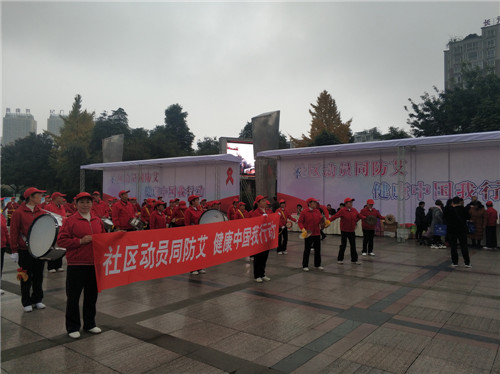 四川新闻网眉山11月30日讯(徐鹏 文/图) 2019年12月1日是第32个“世界艾滋病日”, 为深入宣传健康中国理念,提高公众防艾意识,营造全民参与艾滋病防治工作的良好氛围,由洪雅县卫生健康局组织,21个防治成员单位共同参与在洪雅县生态广场联合开展了“社区动员同防艾,健康中国我行动”为主题的艾滋病宣传活动。
