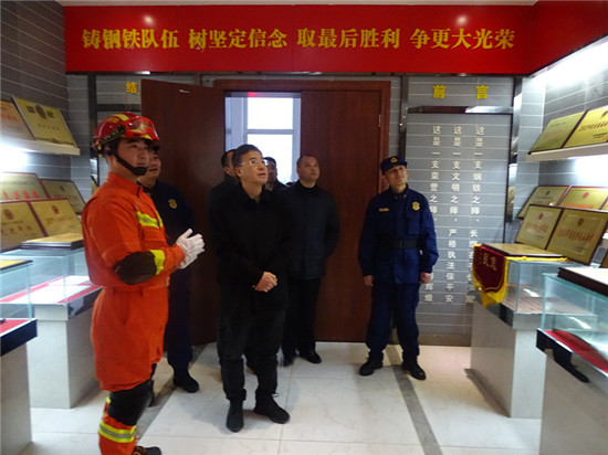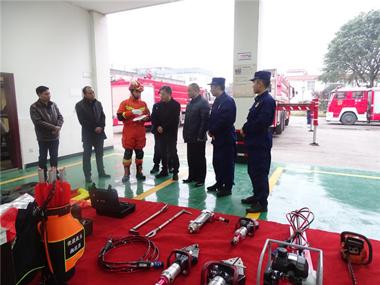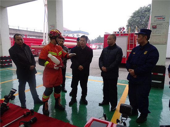 阳运良一行来到县消防救援大队后,亲切的慰问了整齐列队的消防指战员和消防文员,肯定了近年来洪雅消防在全县经济建设和守护全县人民消防安全方面作出的积极贡献,并勉励全体消防指战员要一如既往的发扬消防队伍优良传统,再接再厉,再鼓干劲,再立新功。随后,实地查看了中队的车辆装备及营房建设,现场观摩了消防装备器材,详细询问了中队的装备配备及指战员生活学习等情况。调研工作中,县消防救援大队大队长刘振向调研组人员介绍了改革转隶后大中队的工作性质和职能、当前的人员编制和分工,汇报了大中队在防灭火、应急救援、队伍管理等方面开展的工作和取得的成效,综合分析了洪雅县经济发展对消防工作的影响和消防工作中存在的主要问题,并提出了下一步的消防工作思路。