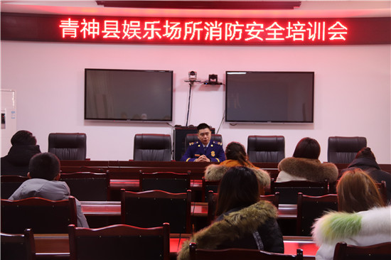 四川新闻网眉山1月8日讯(鲁红燕 文/图)为扎实做好冬春火灾防控宣传工作,进一步提高娱乐场所员工的消防安全意识,提升应对突发火灾处置能力,1月7日,青神县消防大队组织辖区娱乐场所消防安全负责人及管理人员进行消防安全培训。