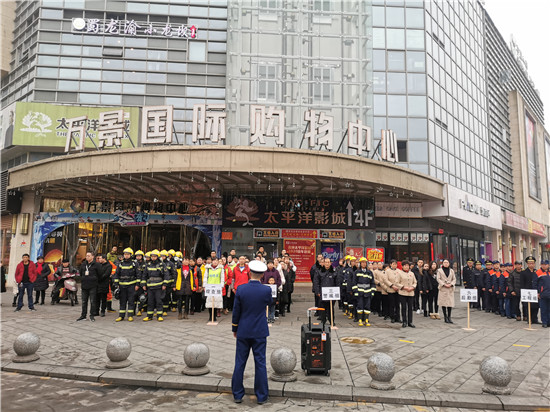 四川新闻网眉山1月10日讯 为提升商业综合体火灾防控和员工自防自救水平,提高应急救援队伍处置突发事件能力,1月10日,青神县消防大队联合辖区万景中岩广场购物中心举行消防应急疏散演练。