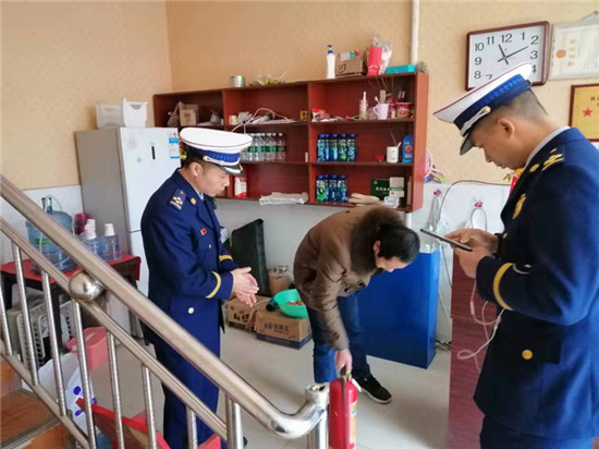 检查过程中,大队监督检查人员重点对各单位消防安全责任制是否落实,消防安全管理制度是否制定,安全出口、疏散通道是否畅通,灭火器材、应急照明设备是否保持完好有效,电动自行车停放、充电是否安全,电器线路是否私拉乱接等情况进行了认真查看。期间,监督检查人员随机询问了工作人员消防安全“四个能力”、“一懂三会”等知识的掌握情况,开启“宣传式”消防安全检查。随后,检查人员反复叮嘱各单位消防安全负责人务必要加强管理,加强巡视,开展每日防火巡查,不断提高单位工作人员的消防安全知识水平和消防安全素质,增强自防自救能力。