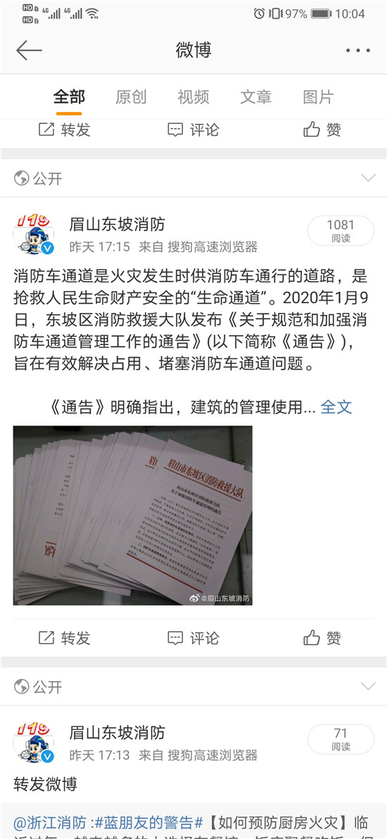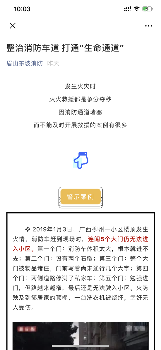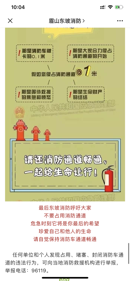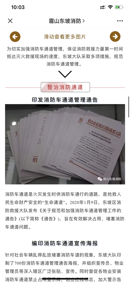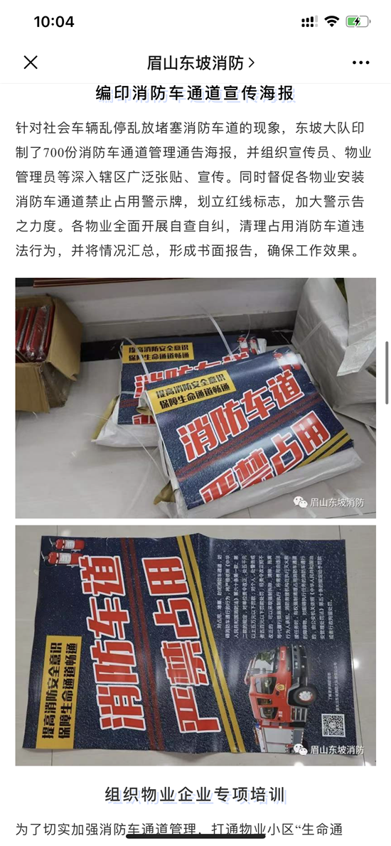 四川新闻网眉山1月14日讯 为更加深入地推进打通“生命通道”集中治理行动,加强消防车通道管理,推动有效解决占用、堵塞消防车通道等火灾隐患问题,东坡消防大队积极利用官方微信、微博开展宣传活动。