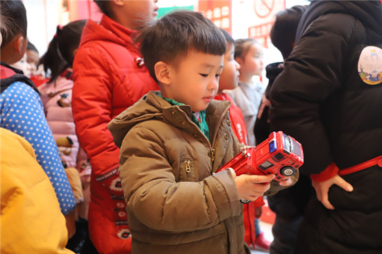 一进“红门”,排列整齐的消防车,立即引起了孩子们的一片欢呼声,在消防员的陪同解说下,小朋友们参观了消防车辆、器材装备,不少小朋友都张大嘴巴,仰望威武的消防车,看到琳琅满目的器材时,他们更是惊喜不已,一些小朋友发现不懂得问题,就纷纷向消防员提问,消防员耐心的解答小朋友们“千奇百怪”的各种问题。随后,在消防科普教育基地,小朋友们还体验了模拟灭火、消防标志标识认识、灭火器的认识和使用、消防安全小知识等,通过体验模拟消防系统让小朋友们掌握了丰富的消防安全知识。活动结束后,每位小朋友将自己精心制作的小礼物送给了消防员,以此表达对消防员叔叔的感谢。