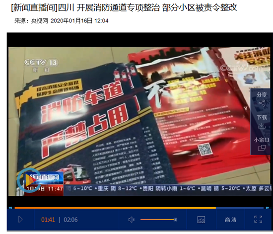 四、广泛开展多渠道媒体宣传,达到宣传效果。大队积极将此次消防车通道宣传工作开展情况在各级各类媒体投稿,其中一条信息被中央电视台新闻频道采用,在人民日报上稿12篇,在市级媒体上稿20篇,多渠道宣传工作的开展真正达到了群众愿意学,愿意改的效果,达到了全区消防环境总体平稳,为即将到来的春节假期营造了良好的群众氛围。(东坡区消防大队供稿)